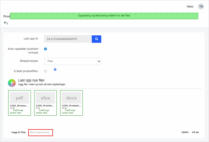 7. Du får en grønn suksessmelding i toppen av skjermen når opplastingen er ferdig
