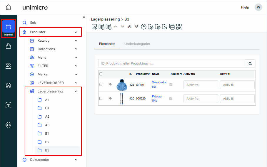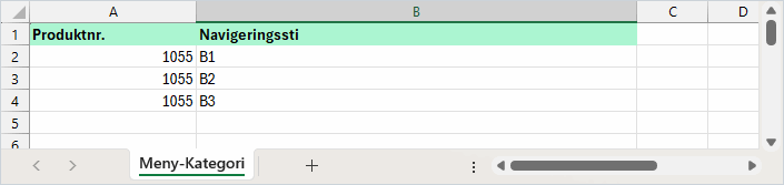 - Navigeringssti – navnet på hyllen produktet skal ligge i (for eksempel B1, B2, B3)