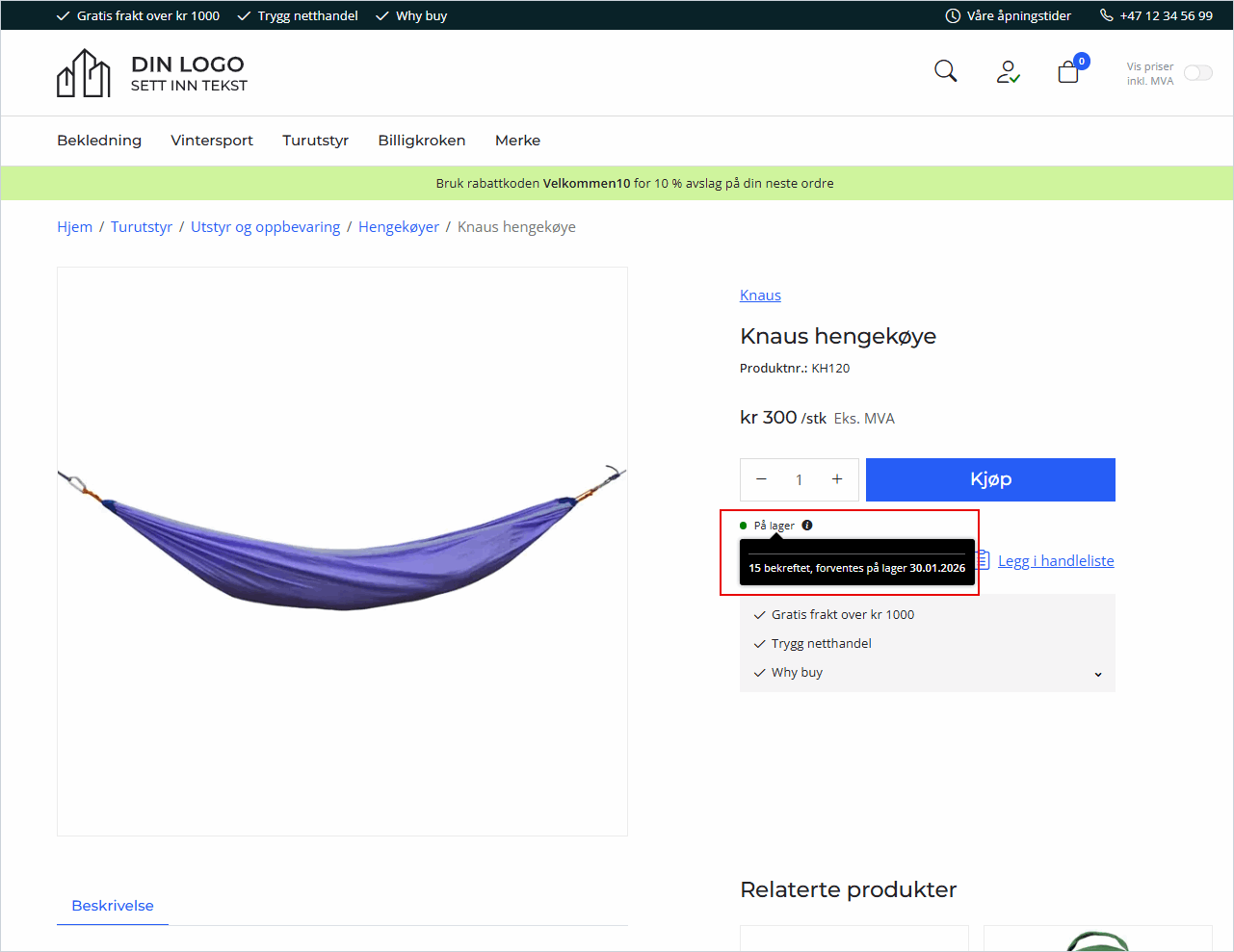 Når funksjonen er aktivert vil kunden se informasjonen direkte på produktsiden.