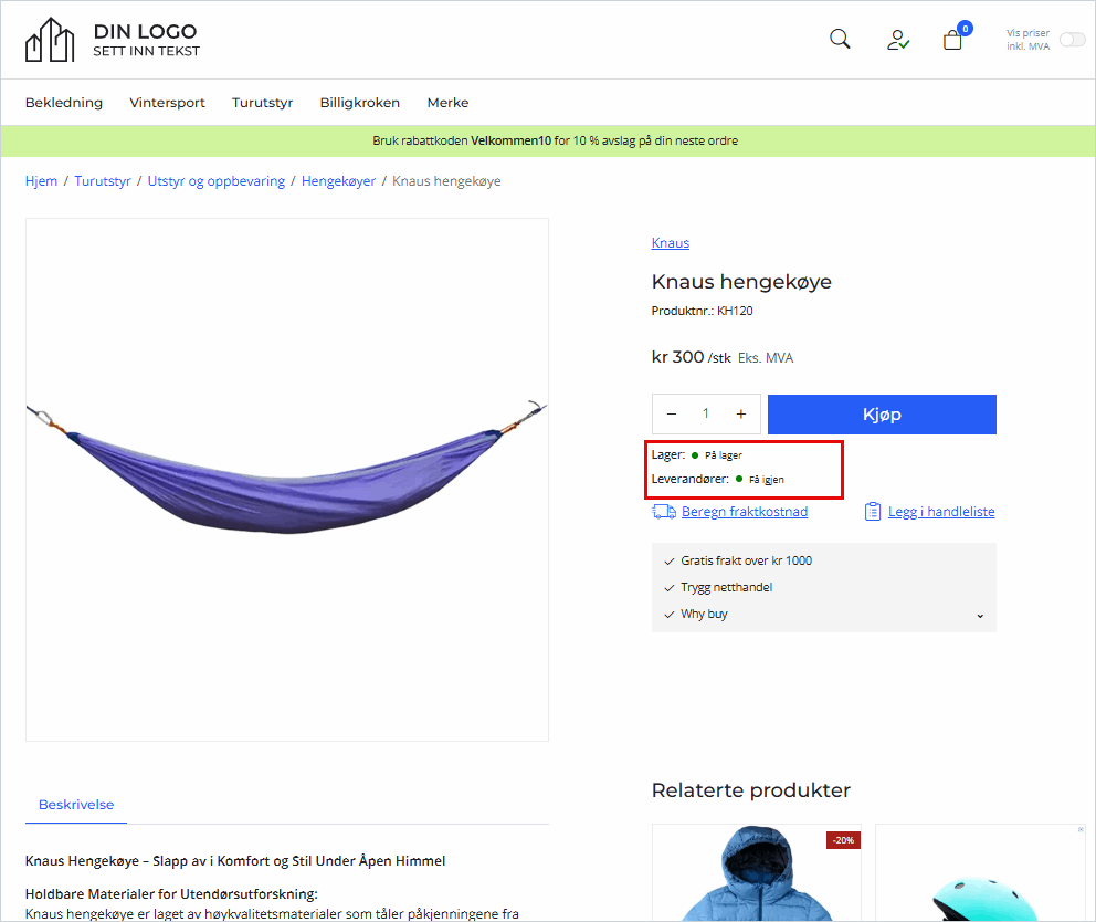 På produktsider kan du velge å vise status fra flere lagre hver for seg.