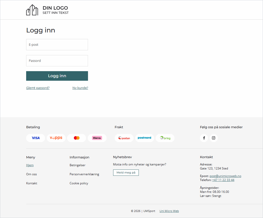 Ny kunde? – Lenker videre til registrering (hvis aktivert).