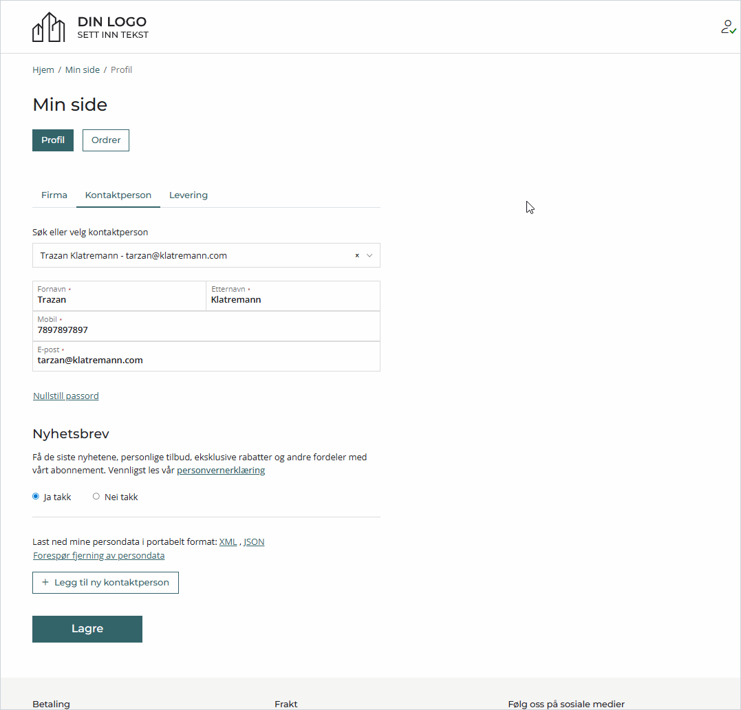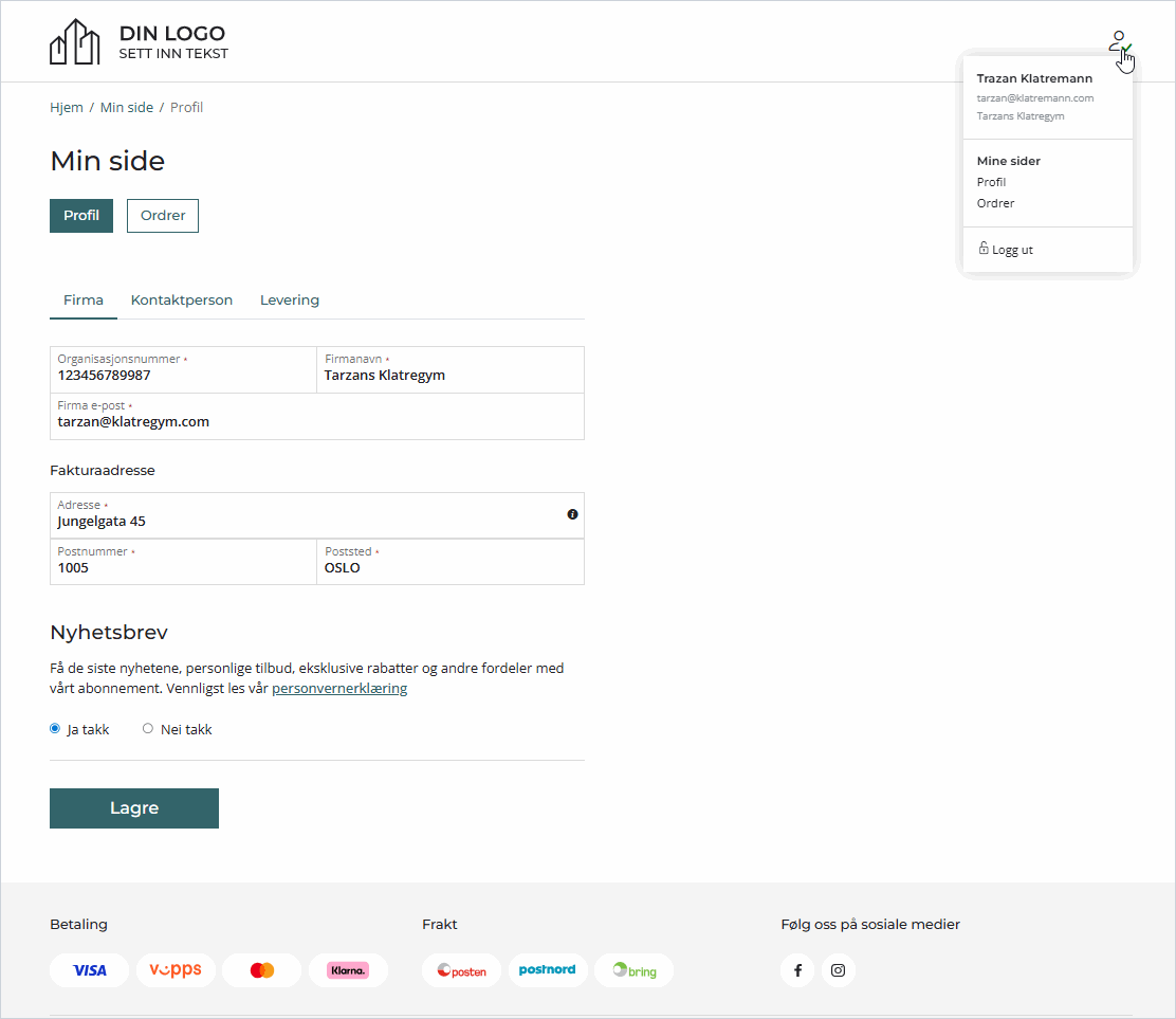 Kunden kan også velge om de vil motta nyhetsbrev. Innstillingen lagres per profil.