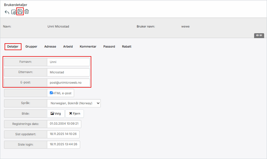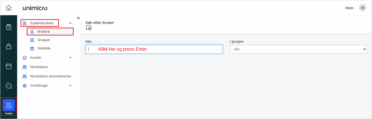 1. Gå til Profiler i venstremenyen og klikk på Systembrukere → Brukere