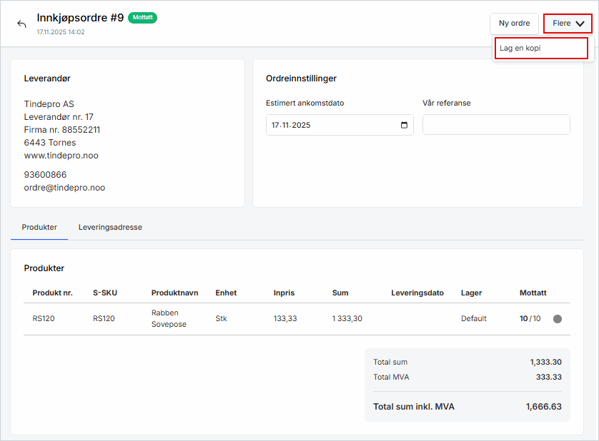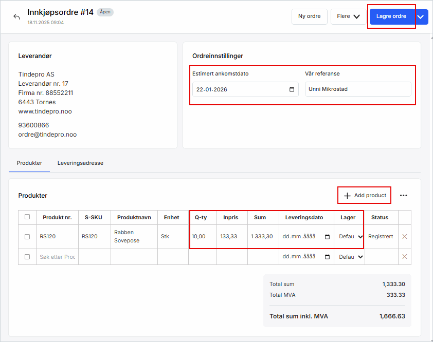 3. Oppdater antall, innpris, leveringsdato og lager hvis det er endringer