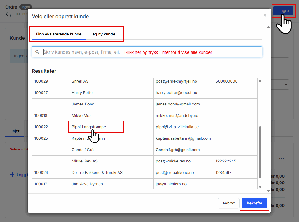 3. Opprett eller velg kunde