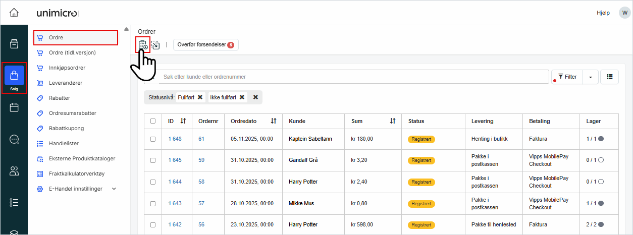 1. Gå til Salg i venstremenyen og klikk på Ordre