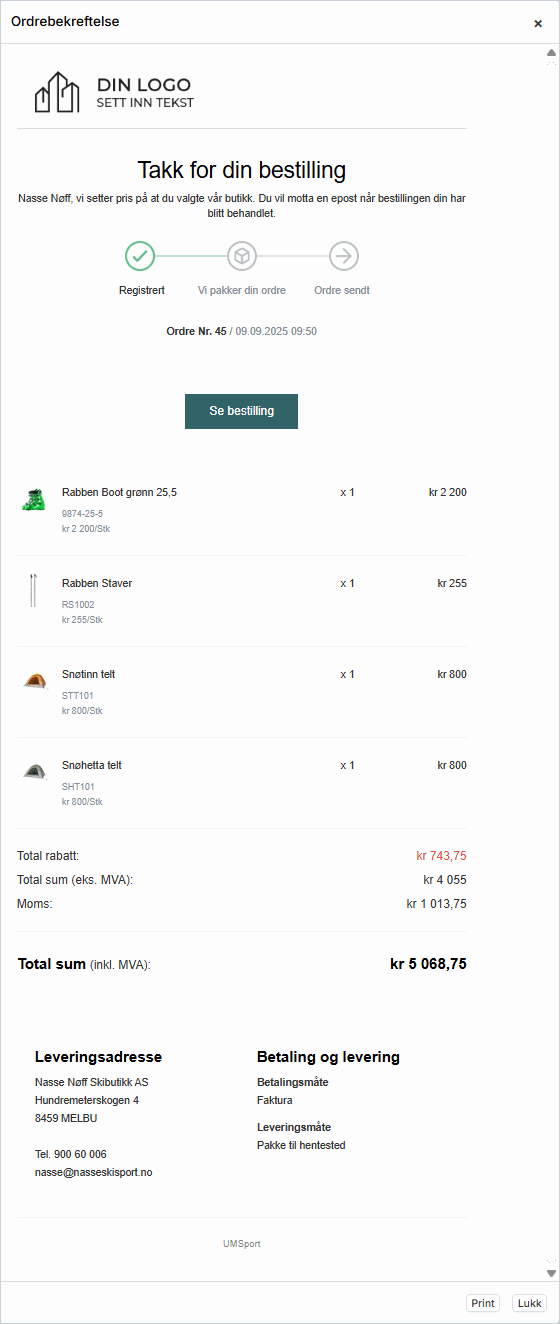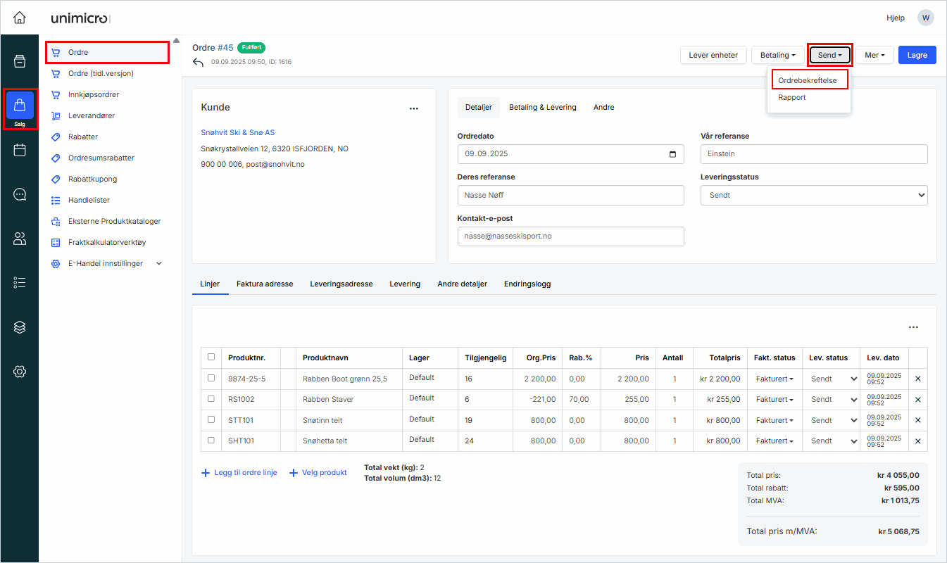 5. Klikk på Send for å sende ordrebekreftelsen på e-post