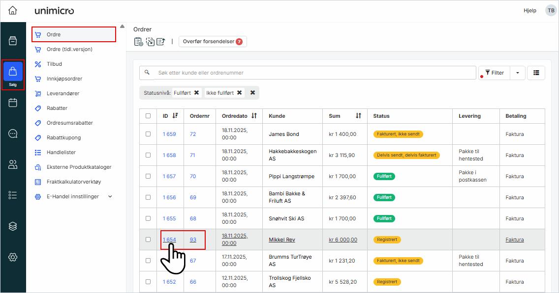 2. Klikk på kundens navn for å åpne kundekortet. Du kan også åpne kunden i en ny fane for å beholde ordren åpen.