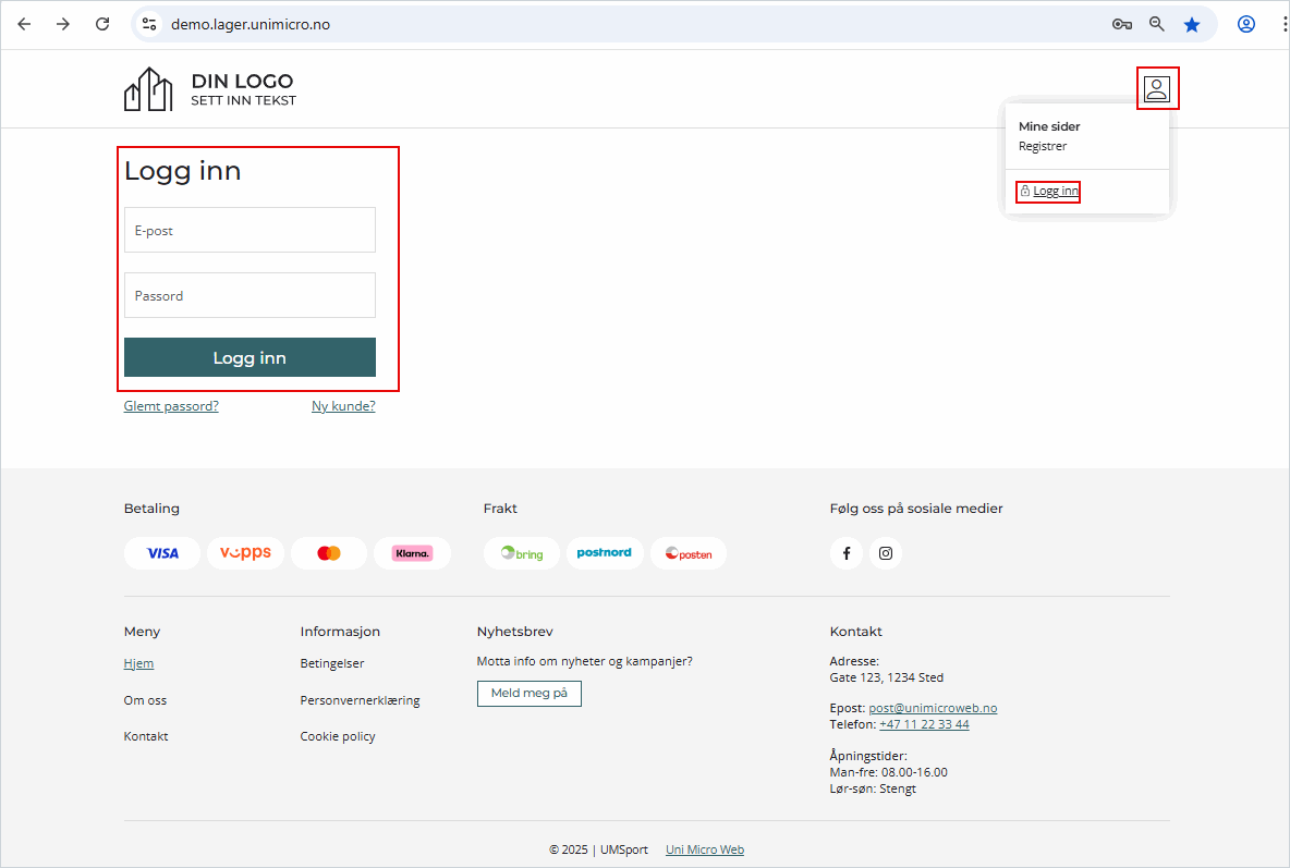 Du kan også klikke på Ny kunde? for å opprette en ny profil dersom du ikke har registrert deg tidligere.