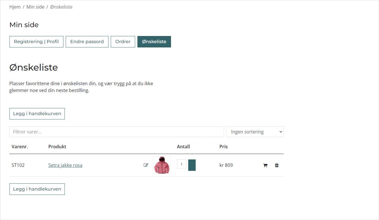 Kunder som har handlet i nettbutikken kan når som helst returnere for å handle igjen. På Min Side har nettkunder tilgang til blant annet ordrehistorikk og ønskelister. Når nettkunde går inn på en tidligere sendt ordre vil man kunne legge varene som ble kjøpt på den spesifikke ordren i handlekurven. Det samme gjelder ønskelistene. På den måten er gjenkjøp lett tilgjengelig for nettkunder. Se eksempelvis under: