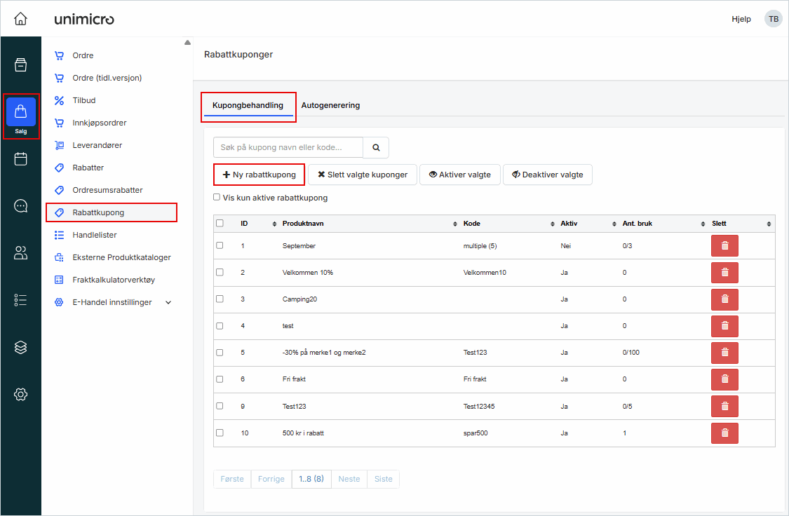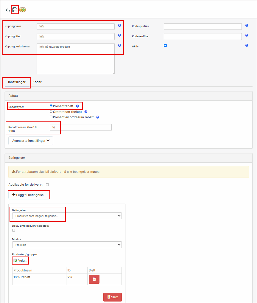 5. I Enkel bruk pr. kunde: Sett hake om en kunde kun skal kunne bruke rabatten en gang