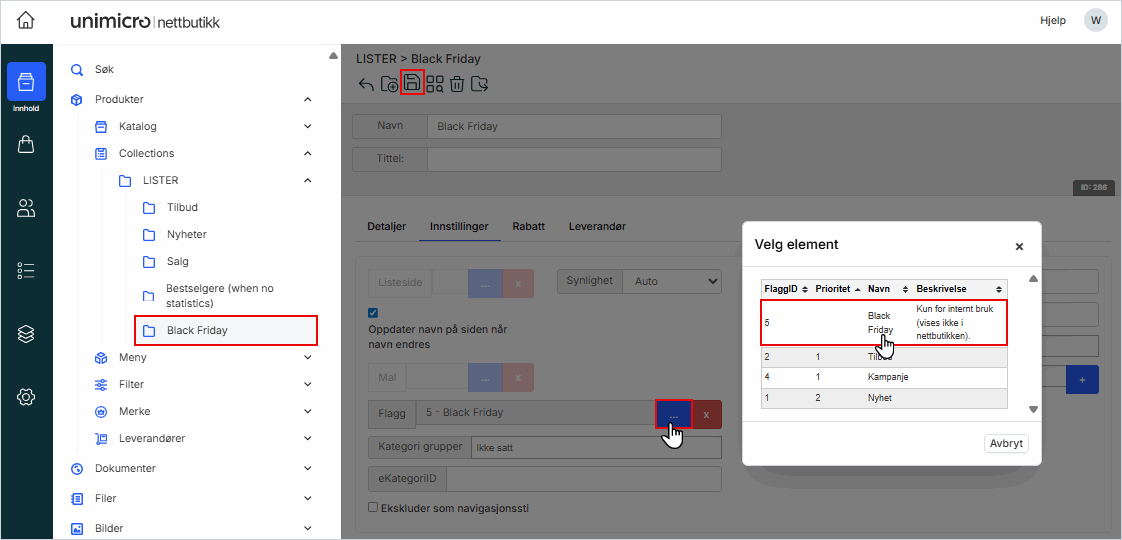 1. Gå til Innhold i venstremenyen og klikk på Produkter → Collections → LISTER