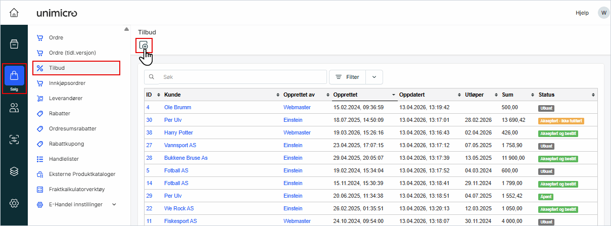 1. Gå til Salg i venstremenyen og klikk på Tilbud