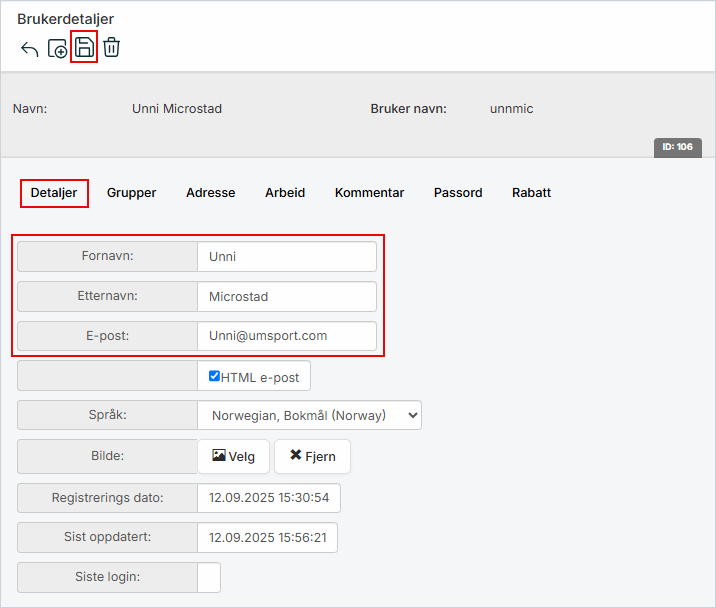5. Klikk på Lagre og Send for å sende passordet til brukerens e-post