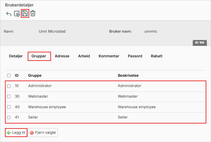4. Sett hake ved de gruppene du vil tildele brukeren