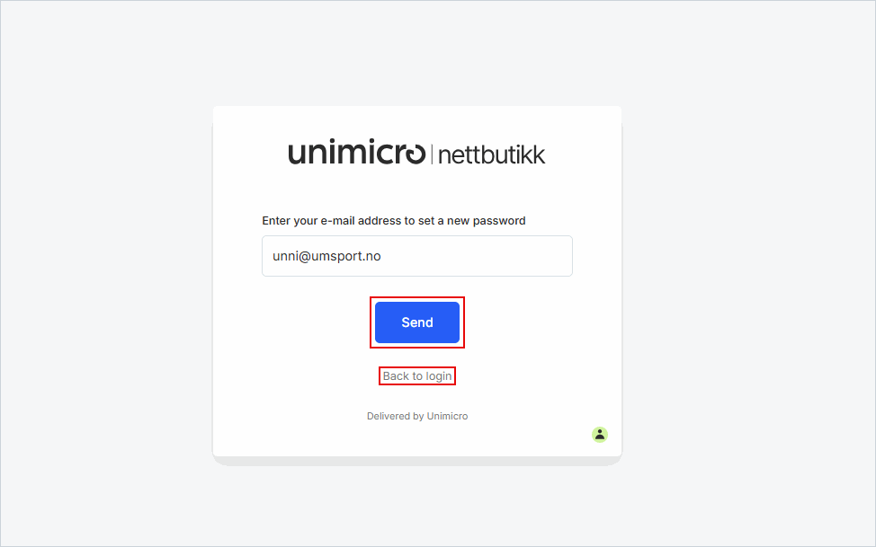 3. Klikk på Send for å sende instruksjoner til e-postadressen som er registrert på brukeren