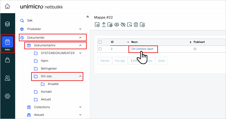 Klikk på Dokumenter → Dokumentarkiv → Om oss