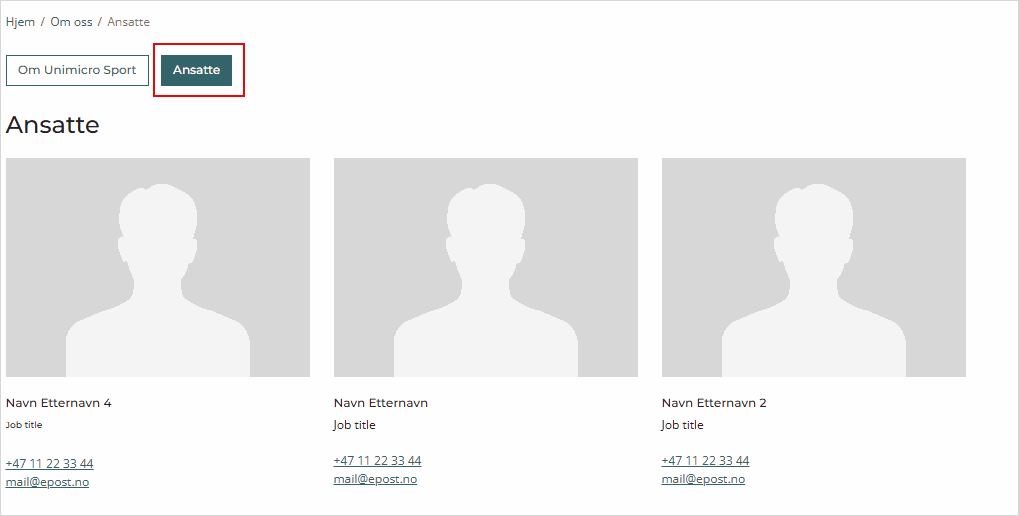 Velg Om oss → Ansatte → Vis ansatte slik at det markeres i blått