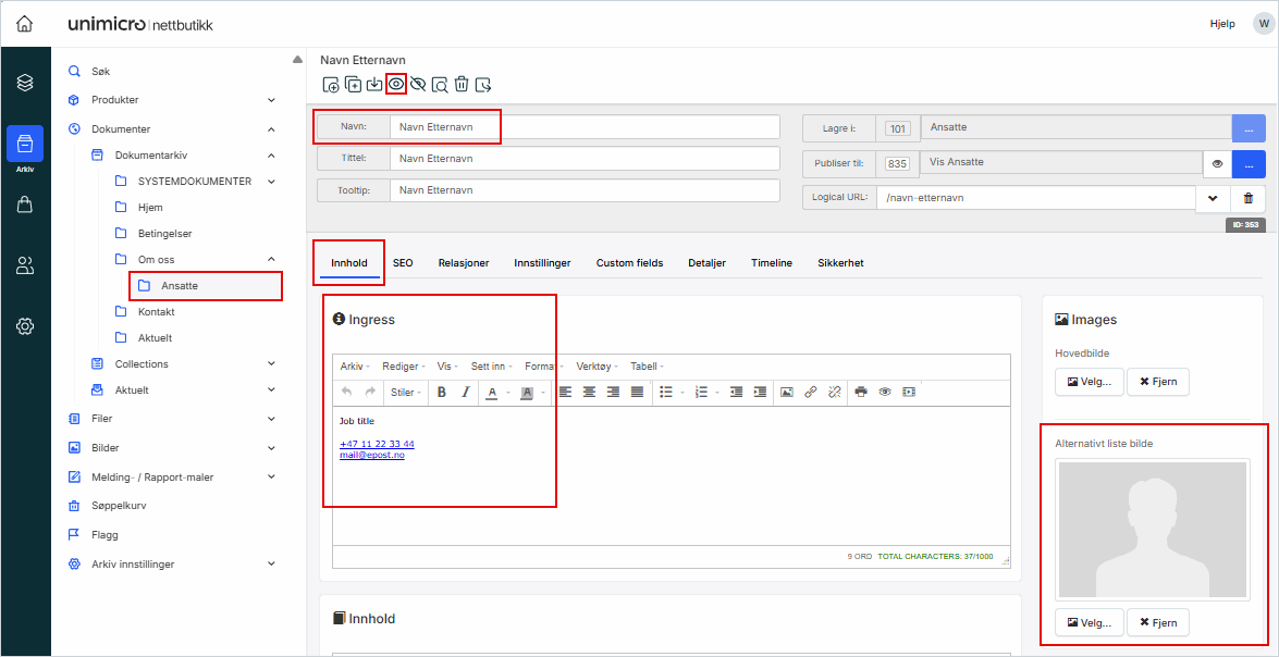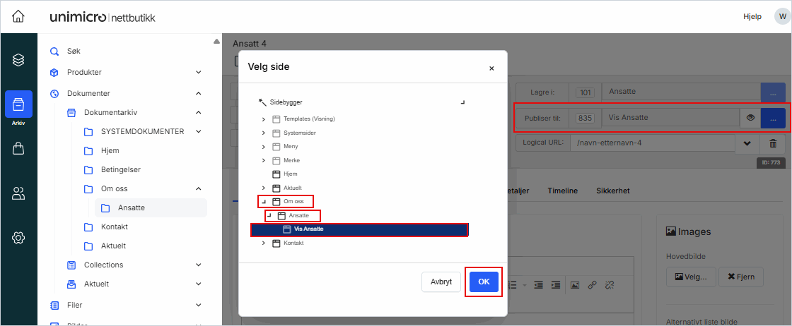 - Sjekk feltet Publiseres til under toppmenyen om det står Vis Ansatte