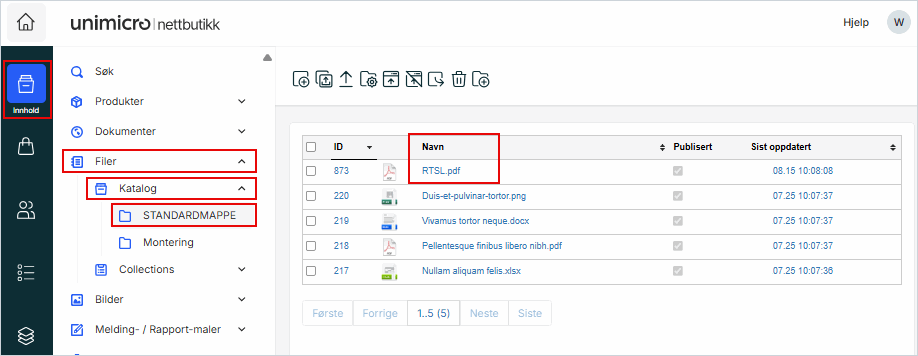 For at systemet skal koble PDF-filen til riktig produkt automatisk, må filnavnet være identisk med produktnummeret i nettbutikken. Hvis filnavnet ikke stemmer nøyaktig, blir filen avvist i importen og vil ikke knyttes til et produkt.