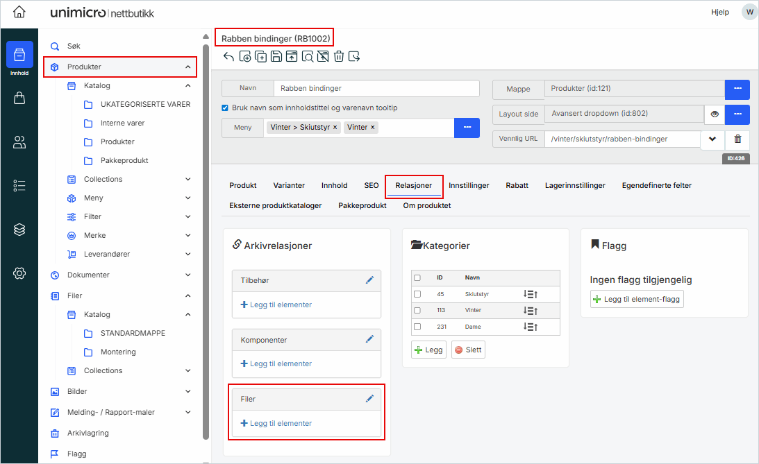 1. Gå til Produktarkiv og åpne produktet for redigering: Rabben bindinger