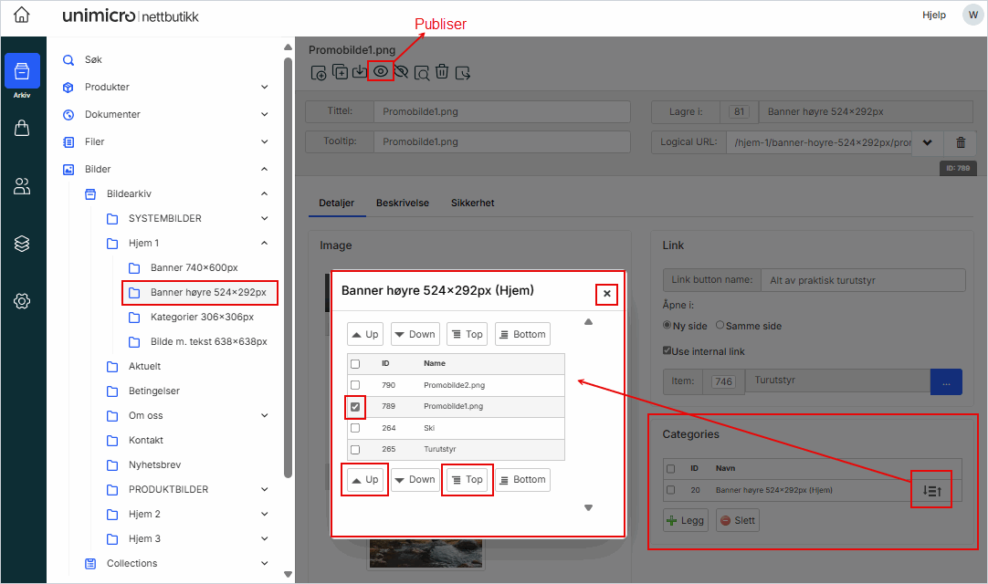 Du finner denne visningen under Arkiv→ Bilder → Collections → Hjem 1 → Banner høyre 524x292px (Hjem)