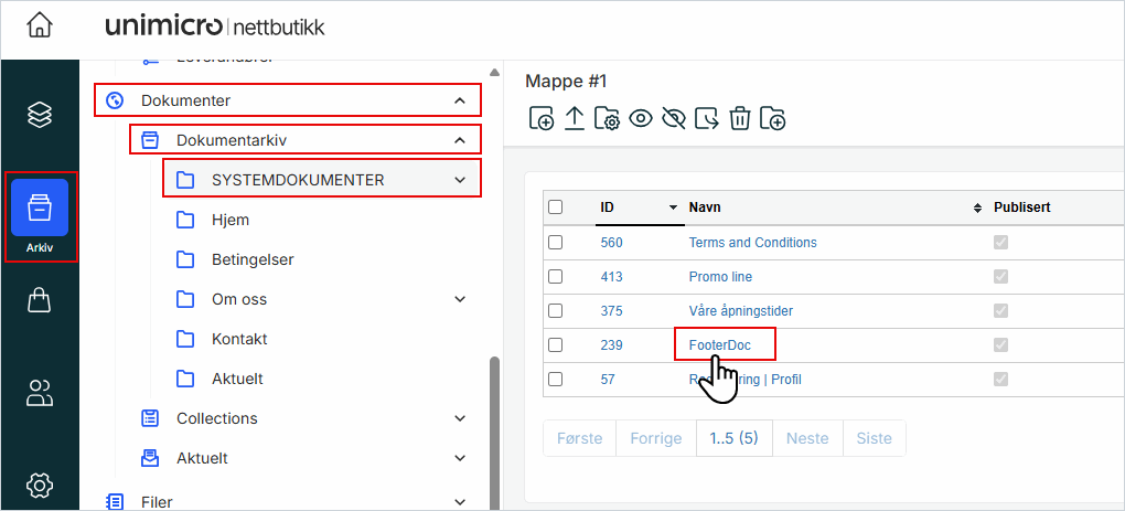 2. Klikk på Dokumenter → Dokumentarkiv → Systemdokumenter