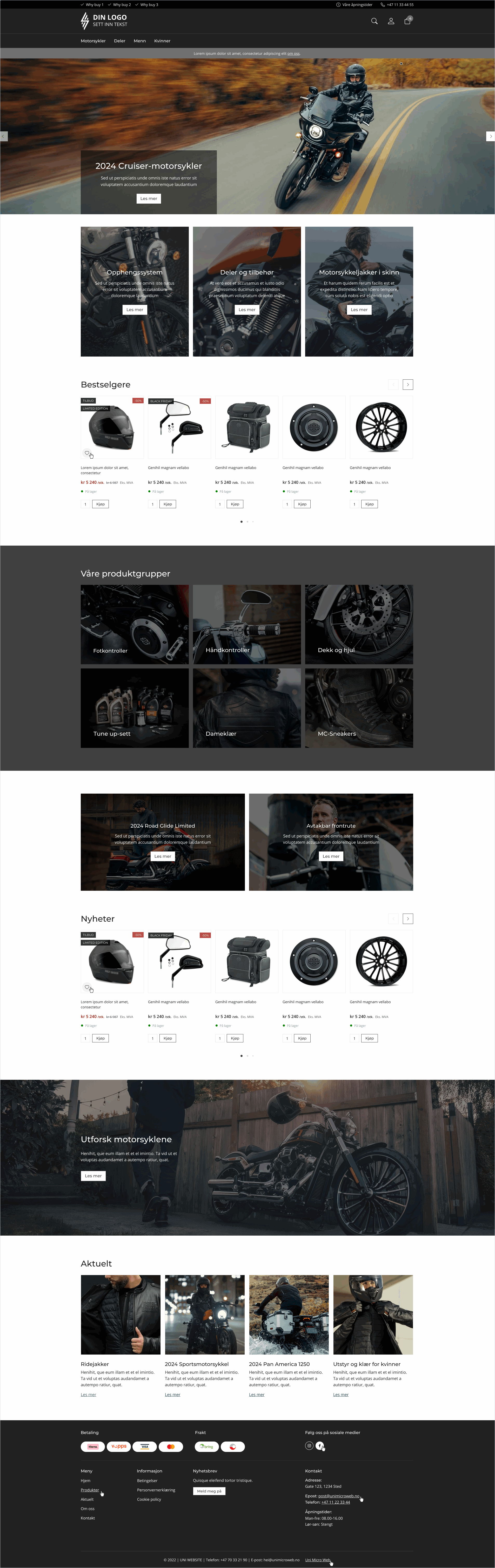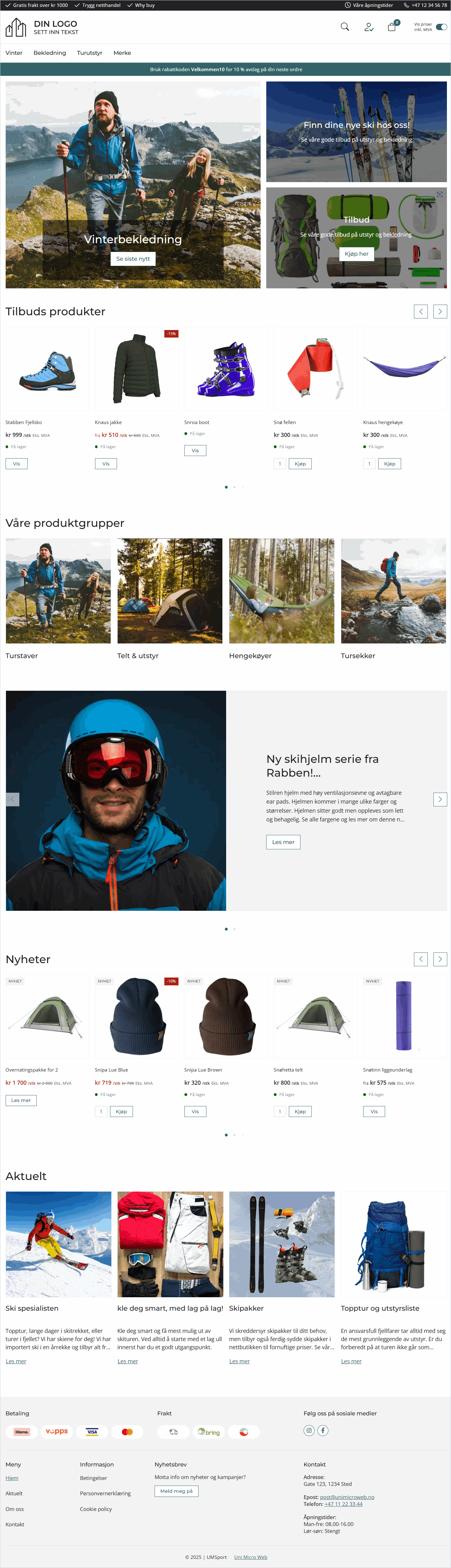 - Produktlister – viser bestselgere, tilbud eller nyheter