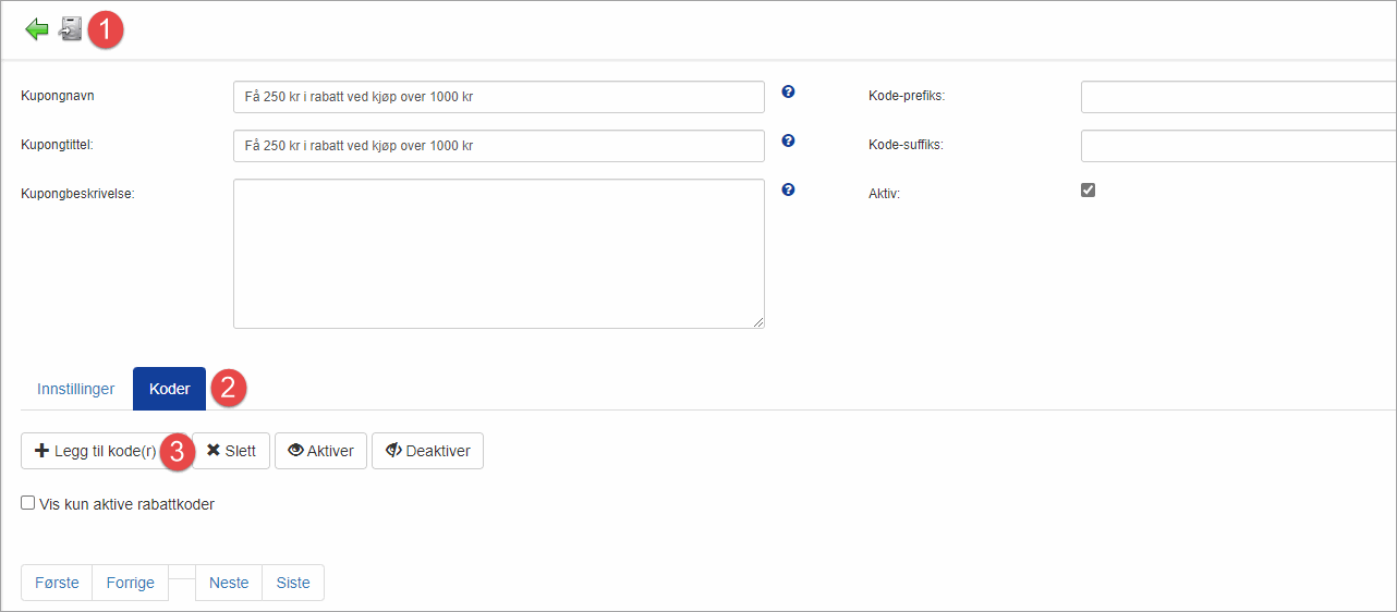 1. Sett kupongnavn, tittel og beskrivelse om ønskelig