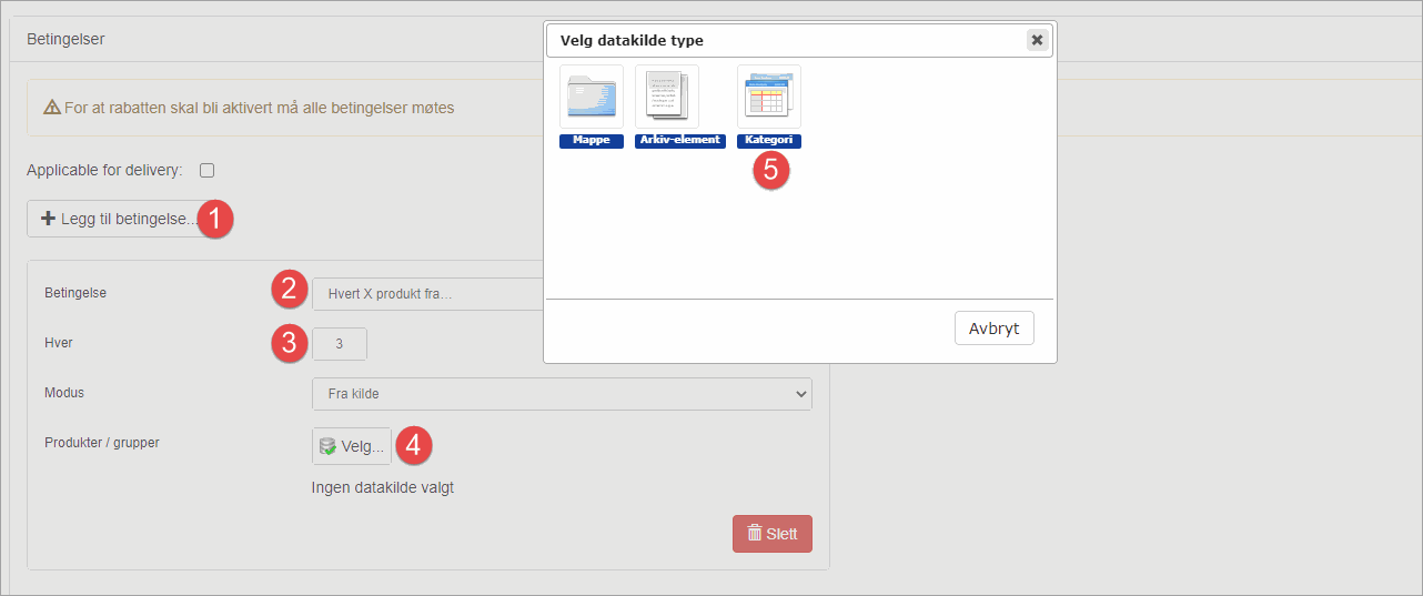 4. Trykk på "velg" for å bestemme hvilke varekategorier rabattkoden skal gjelde for