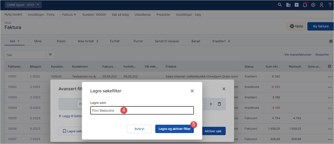 4. Gi filter et navn, her "Finn ordre"